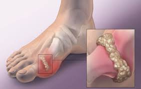 Nếu nồng độ axit uric đạt mức 7 mg/dL hoặc cao hơn, muối monosodium urate (MSU) sẽ hình thành các tinh thể dạng kim. Khi các tinh thể MSU tích tụ ở các khớp, chúng sẽ gây ra tình trạng viêm và đau nhức, đó là các triệu chứng đặc trưng của bệnh gút.